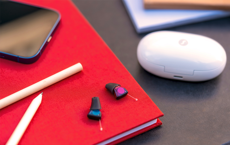 Das Silk Charge&Go IX sitzt maximal diskret im Ohr, dass es nahezu unsichtbar ist. Ausgestattet mit fortschrittlicher Technologie, hilft es Ihnen, in lauten Umgebungen zu hören, und passt sich Ihrem Lebensstil an. Es ist winzig, bequem und einfach aufzuladen. Sie können es mit einer einfachen App auf Ihrem Telefon steuern.